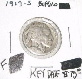 1919-S *RARE KEY DATE* BUFFALO NICKEL RED BOOK VALUE IS $75.00+ *NICE EARLY FINE GRADE NICKEL*!! NICKEL CAME OUT OF SAFE!! ***Coin, Currency & All Items Listed in this auction - Grades, Conditions and Values are not Safe Deposit Coins LLC Responsibilty. Grades, Condition and Values are determined by Consigner(s) & Buyers ONLY