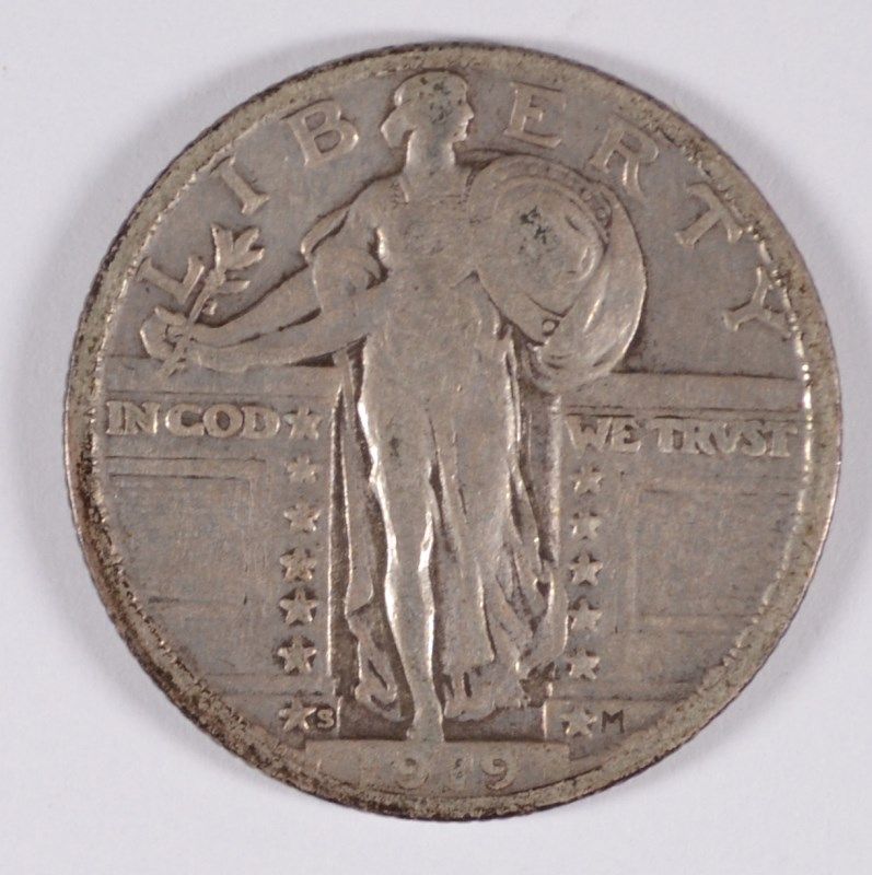1919-S STANDING LIBERTY QUARTER, VF NICE KEY DATE