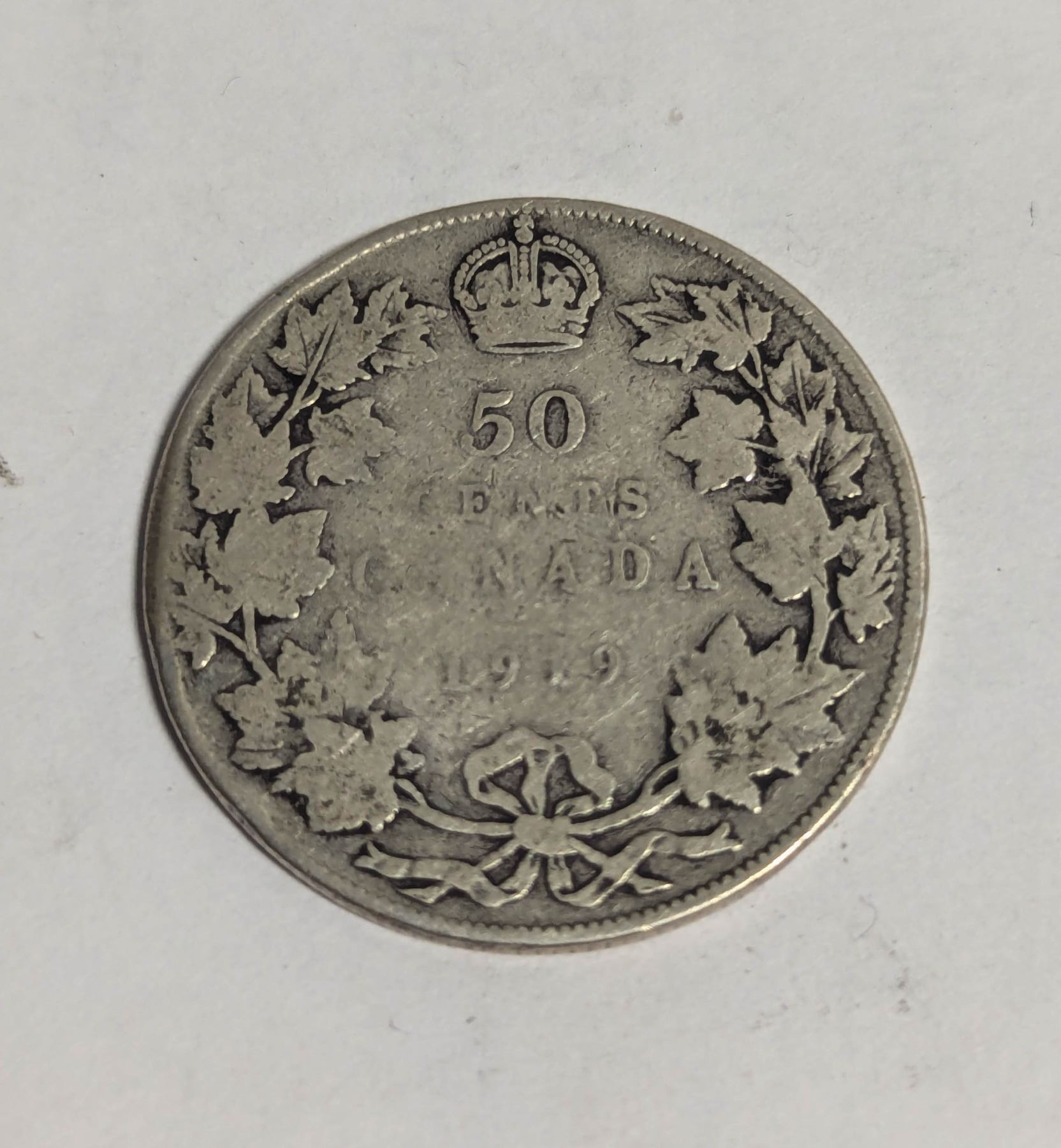 1919 STERLING SILVER CANADA 50 CENTS COINS