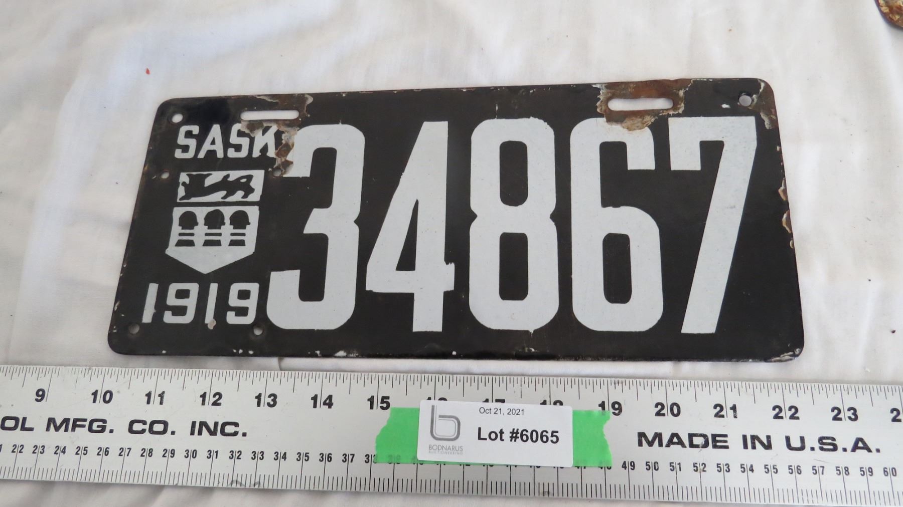 1919 Sask License Plate