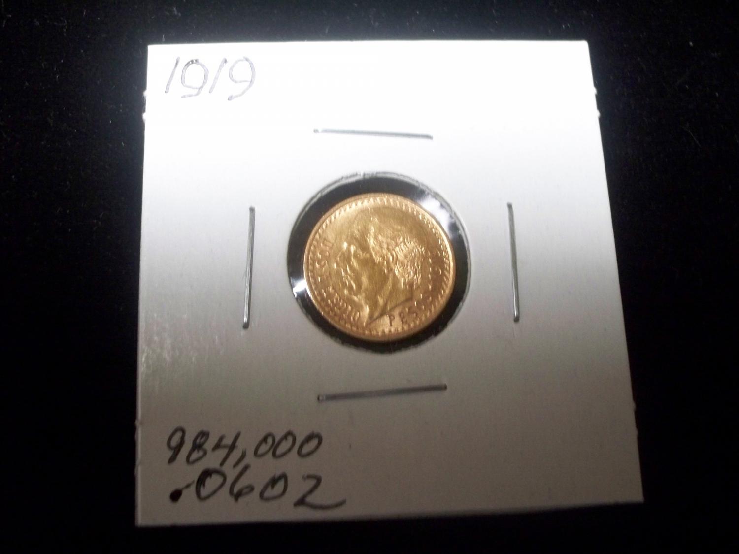 1919 Gold Dos y Medio Pesos - Gold Coin