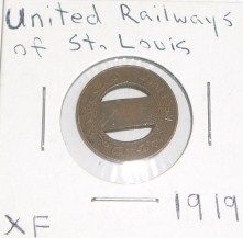 1919 United Railways of St. Louis token ***Coin, Currency & All Items Listed in this auction - Grades, Conditions and Values are not Safe Deposit Coins LLC Responsibilty. Grades, Condition and Values are determined by Consigner(s) & Buyers ONLY***