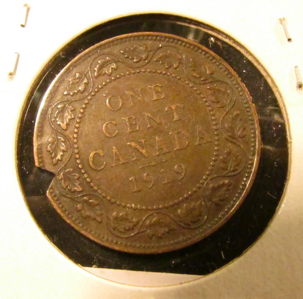 1919 Very Fine Canada Large Cent. Large notch in the edge.