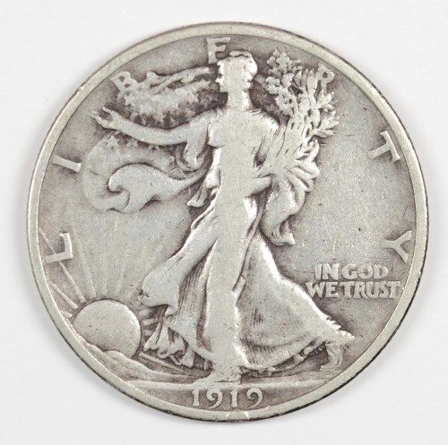 1919 WALKING LIBERTY HALF DOLLAR FINE, NICE