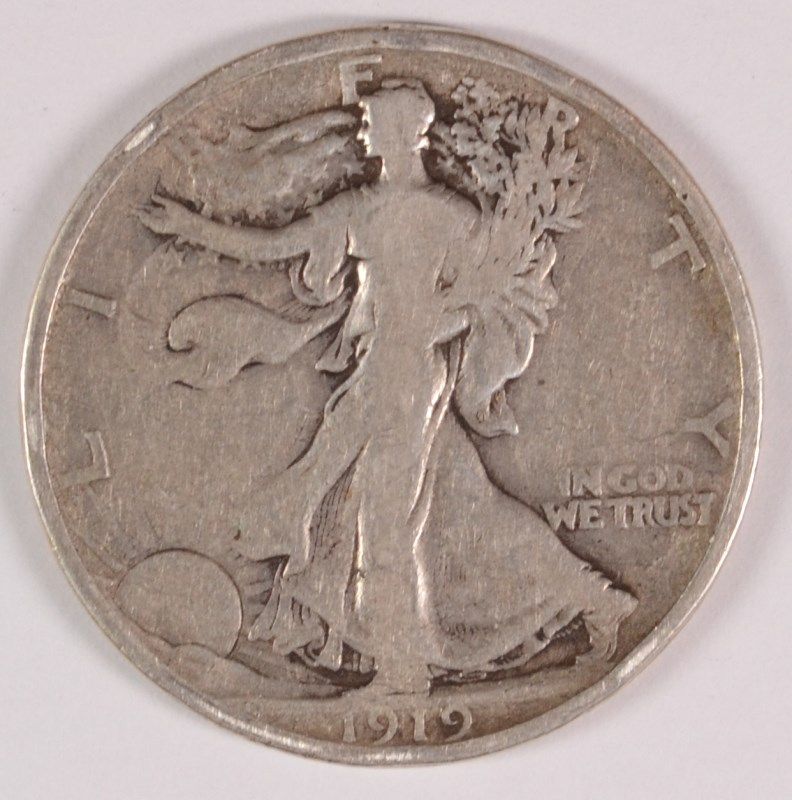 1919 WALKING LIBERTY HALF DOLLAR, SOLID FINE, SCARCE!