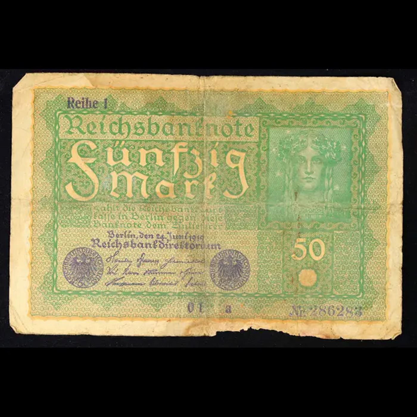1919 Weimar Germany 50 Mark note P# 66 Grades f+.