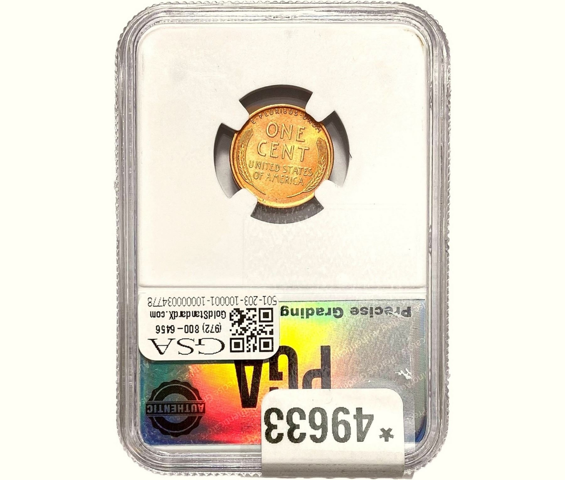 l. All non-certified coins and currency are guaranteed genuine, but are not guaranteed as to grade, since grading is a matter of opinion, an art and not a science, and therefore the description rendered by GSA or any third-party grading service may not agree with the opinion of others (including trained experts), and the same expert may not grade the same item with the same grade at two different times. GSA may, but is not obligated to, express an opinion as to non-certified numismatic items, in GSA’s opinion, or by its employees’ experience and the current interpretation of the American Numismatic Association’s standards as of the date the catalog was prepared. There is no guarantee or warranty expressed or implied that the grading opinions utilized by GSA, if any, will meet the standards of any grading service at any time in the future.