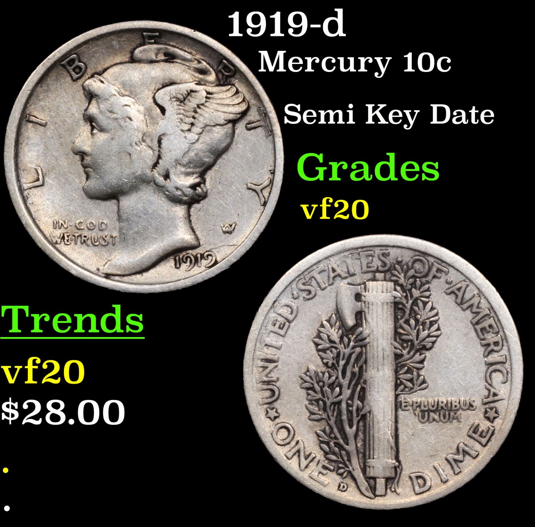 1919-d Mercury Dime 10c Grades vf, very fine.
