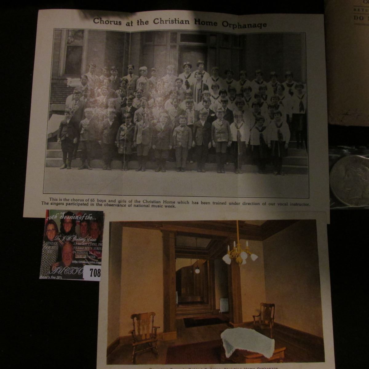 1919 era Envelope with Post Cards from "Christian Home Council Bluffs, Iowa". 'Doc' valued this set at $75.00. 16 different Post Cards; & 1923 P U.S. Peace Silver Dollar, EF.