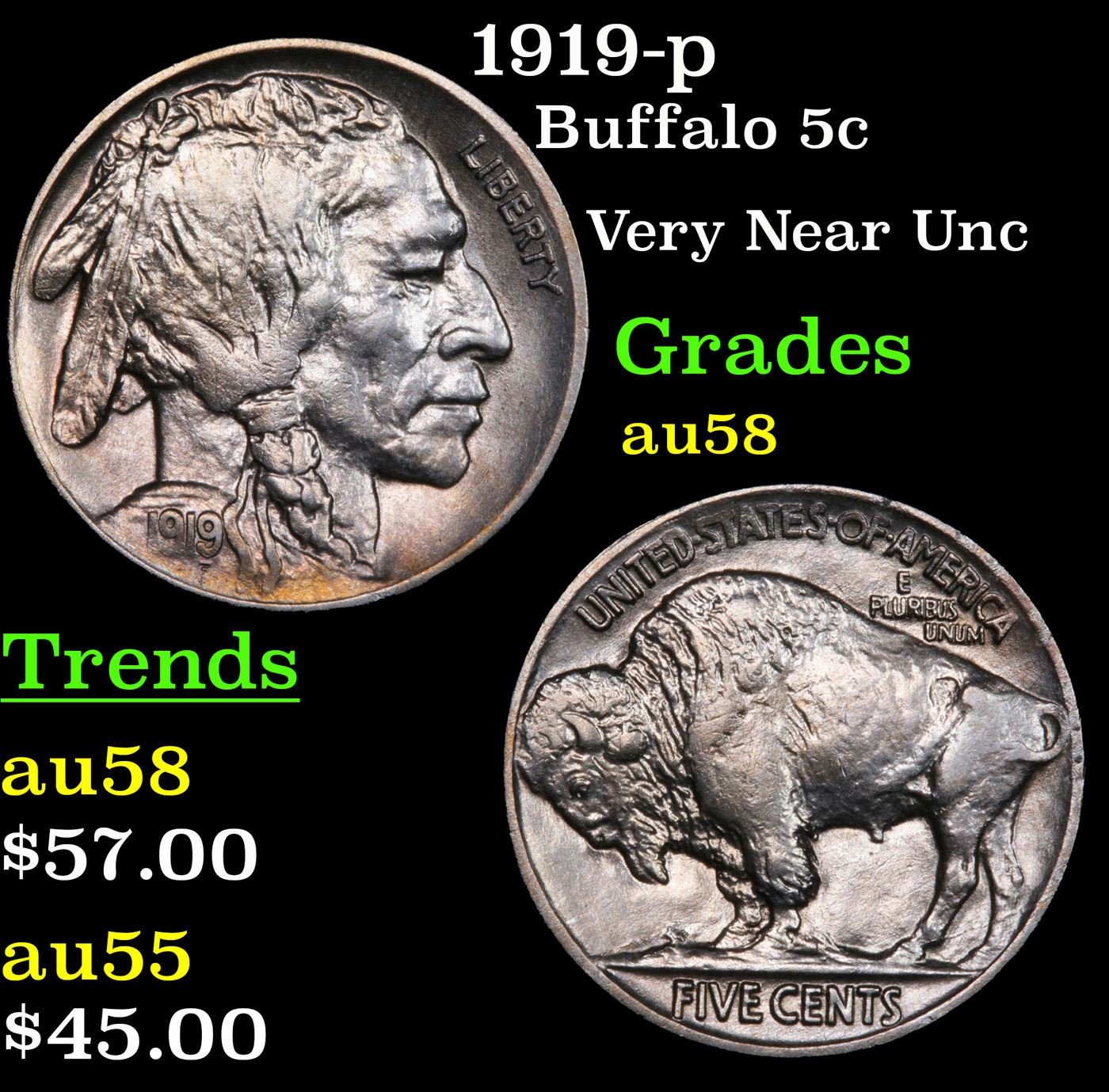 1919-p Buffalo Nickel 5c Grades Choice AU/BU Slider.