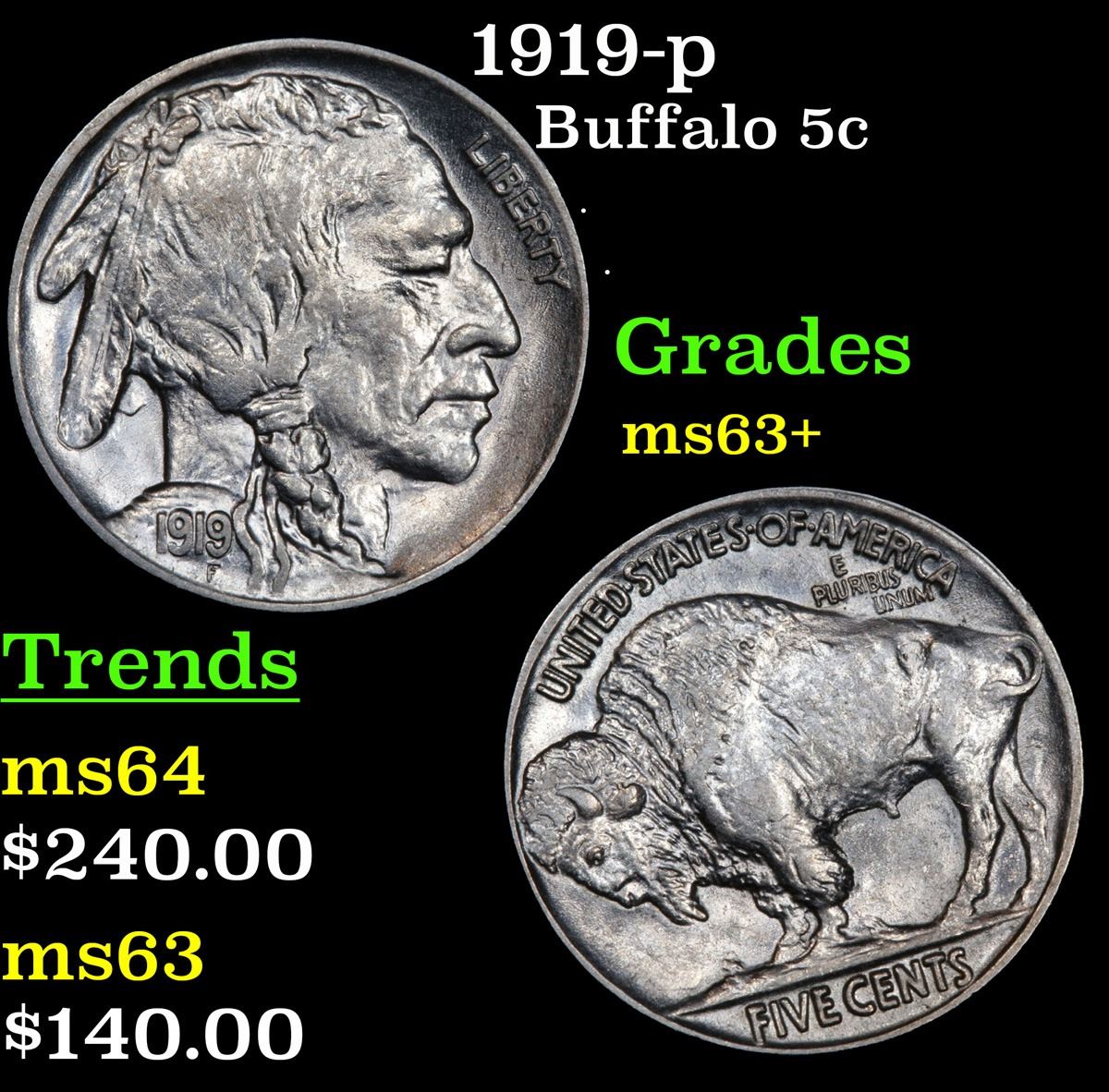1919-p . . Buffalo Nickel 5c Grades Select+ Unc.