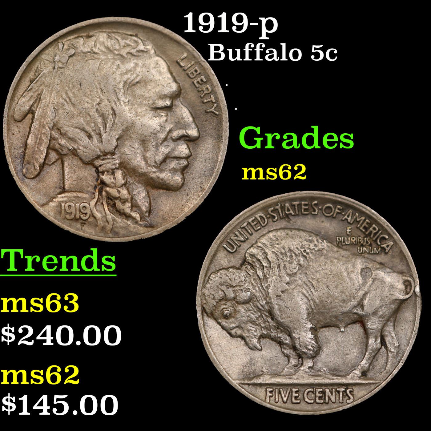 1919-p Buffalo Nickel 5c Grades Select Unc.
