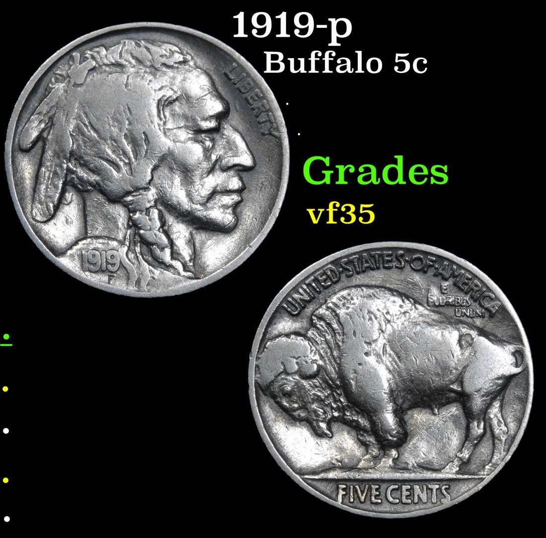 1919-p . . Buffalo Nickel 5c Grades vf++.