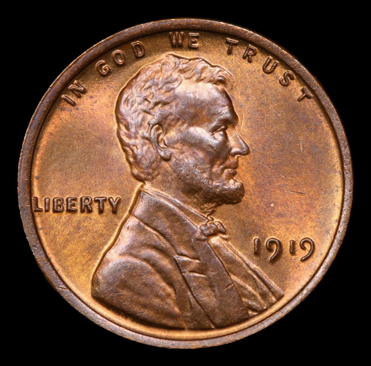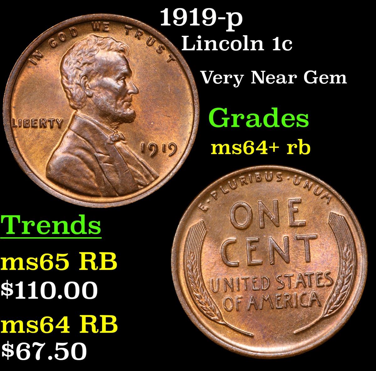 1919-p . Very Near Gem Lincoln Cent 1c Grades Choice+ Unc RB. Out of an original mintage of over 392 million pieces, PCGS estimates only 2500 survive in ms65 or better.