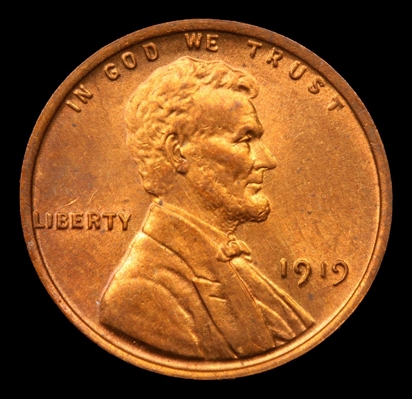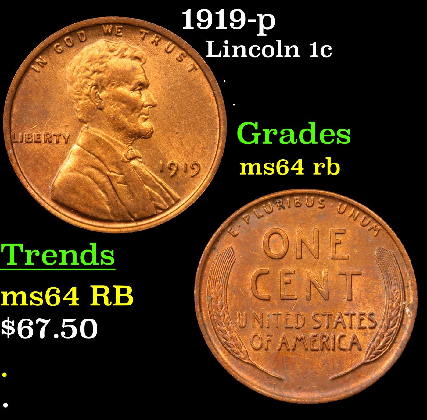 1919-p Lincoln Cent 1c Grades Choice Unc RB.
