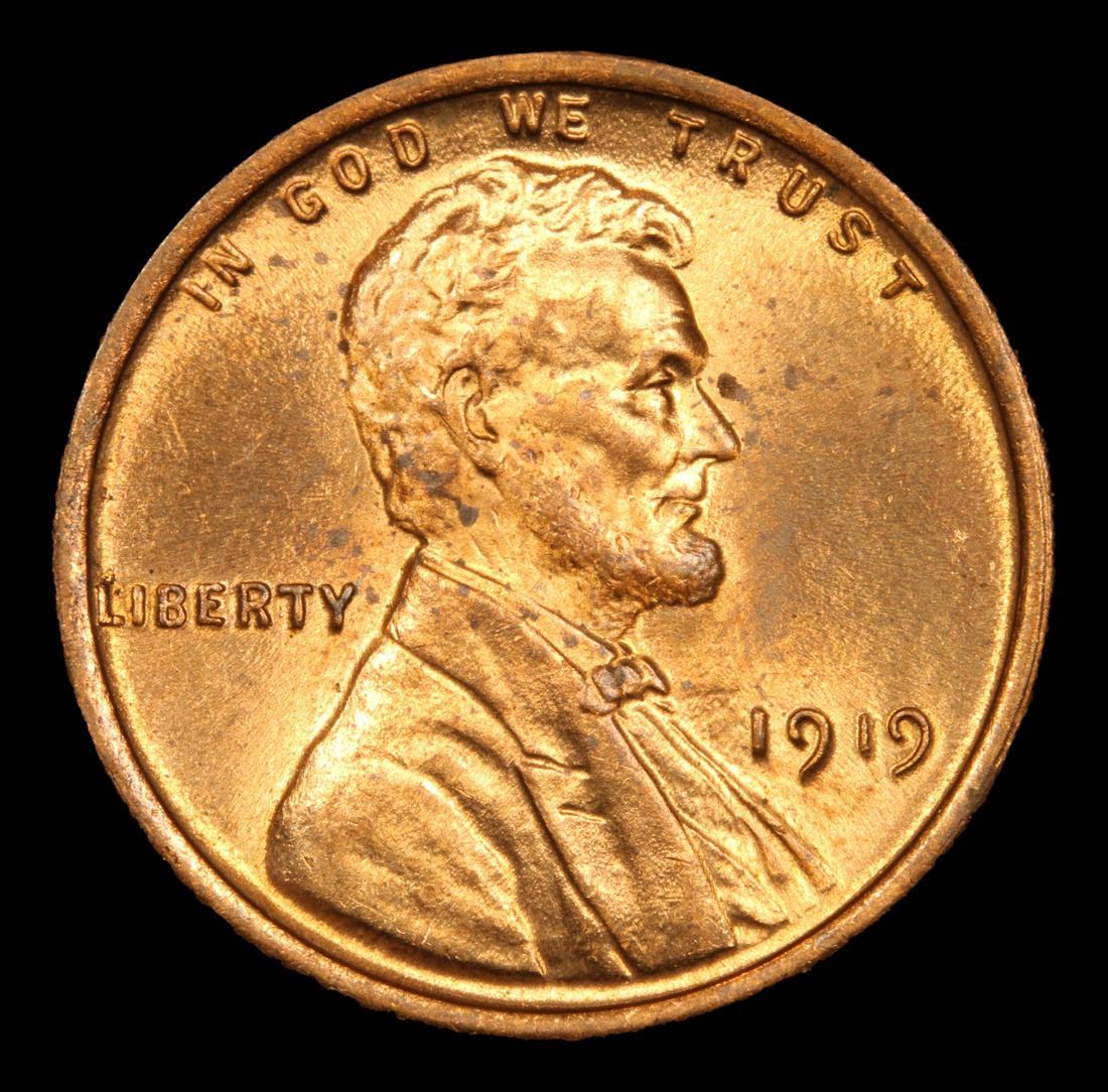 1919-p . Very Near Gem Lincoln Cent 1c Grades Choice+ Unc RD. Out of an original mintage of over 392 million pieces, PCGS estimates only 2500 survive in ms65 or better.