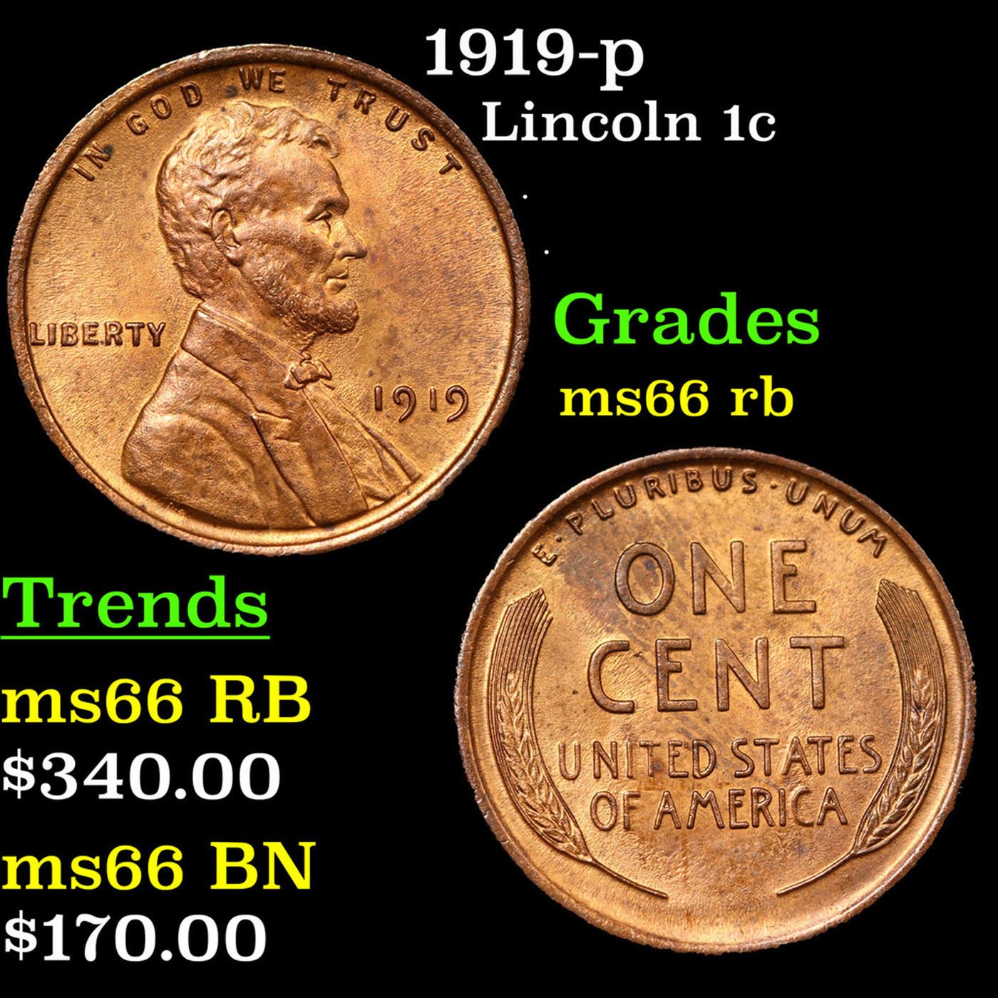 1919-p Lincoln Cent 1c Grades GEM+ Unc RB.