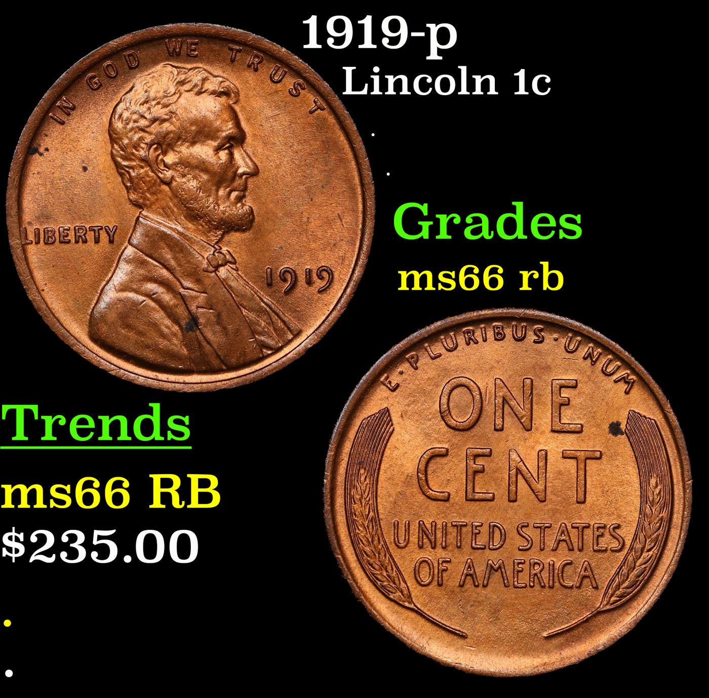 1919-p Lincoln Cent 1c Grades GEM+ Unc RB.
