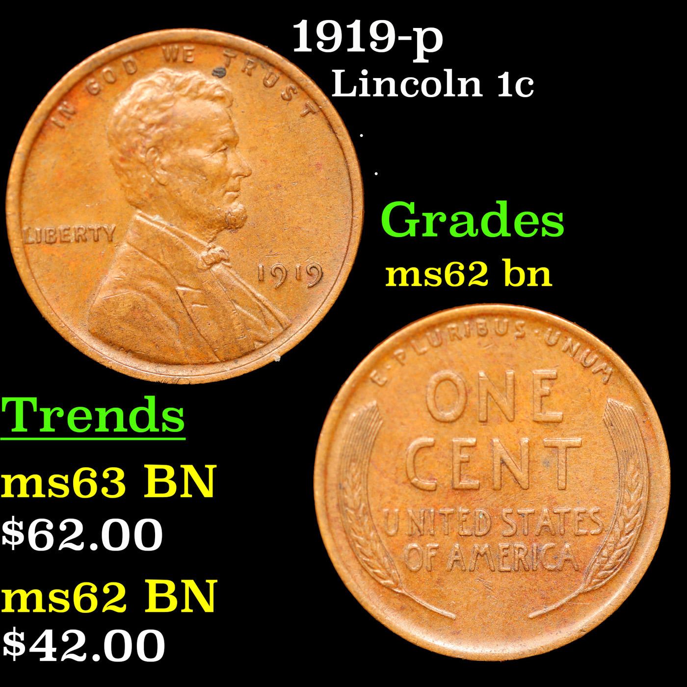 1919-p Lincoln Cent 1c Grades Select Unc BN.