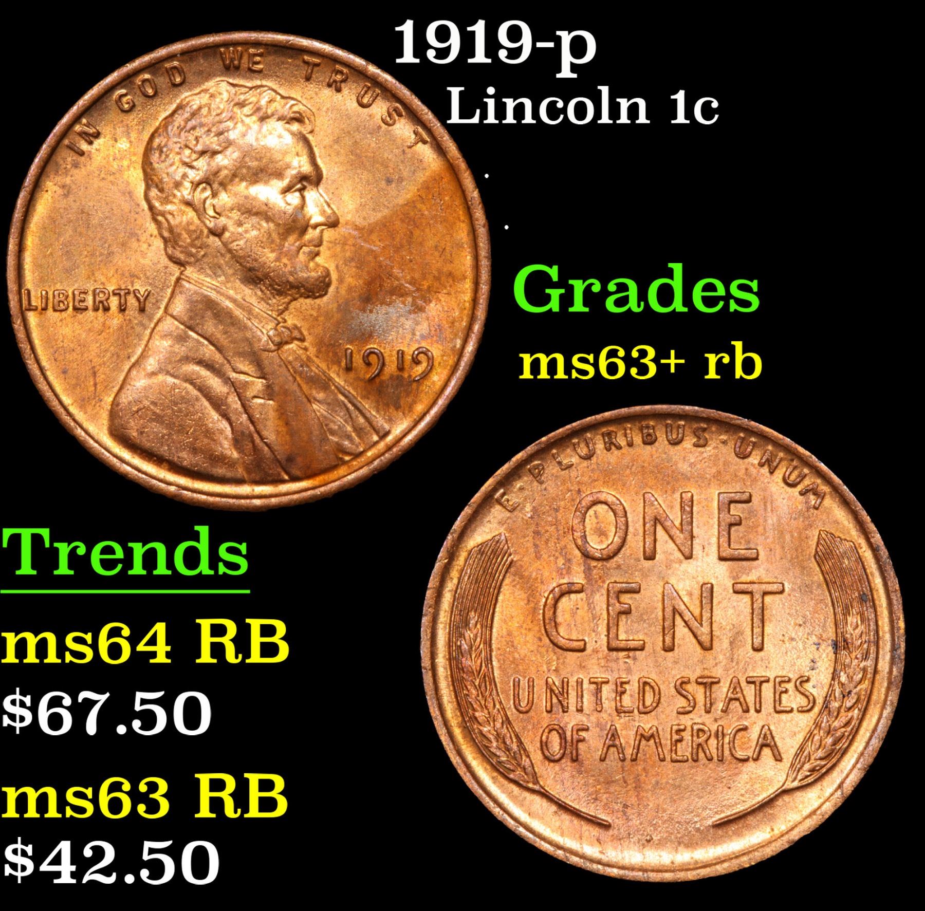 1919-p . . Lincoln Cent 1c Grades Select+ Unc RB. Out of an original mintage of over 392 million pieces, PCGS estimates only 2500 survive in ms65 or better.