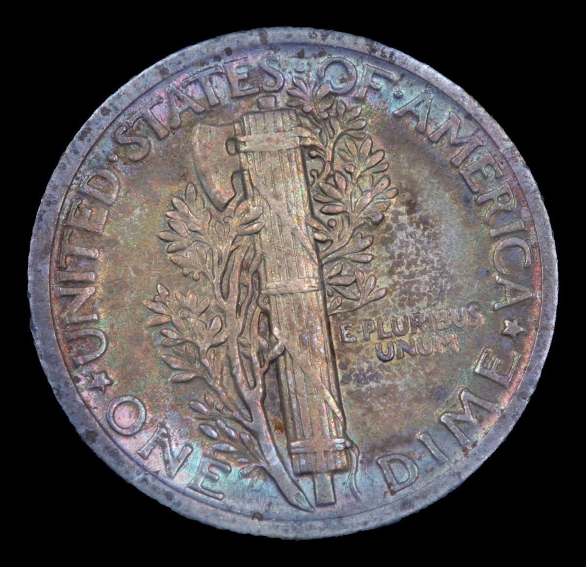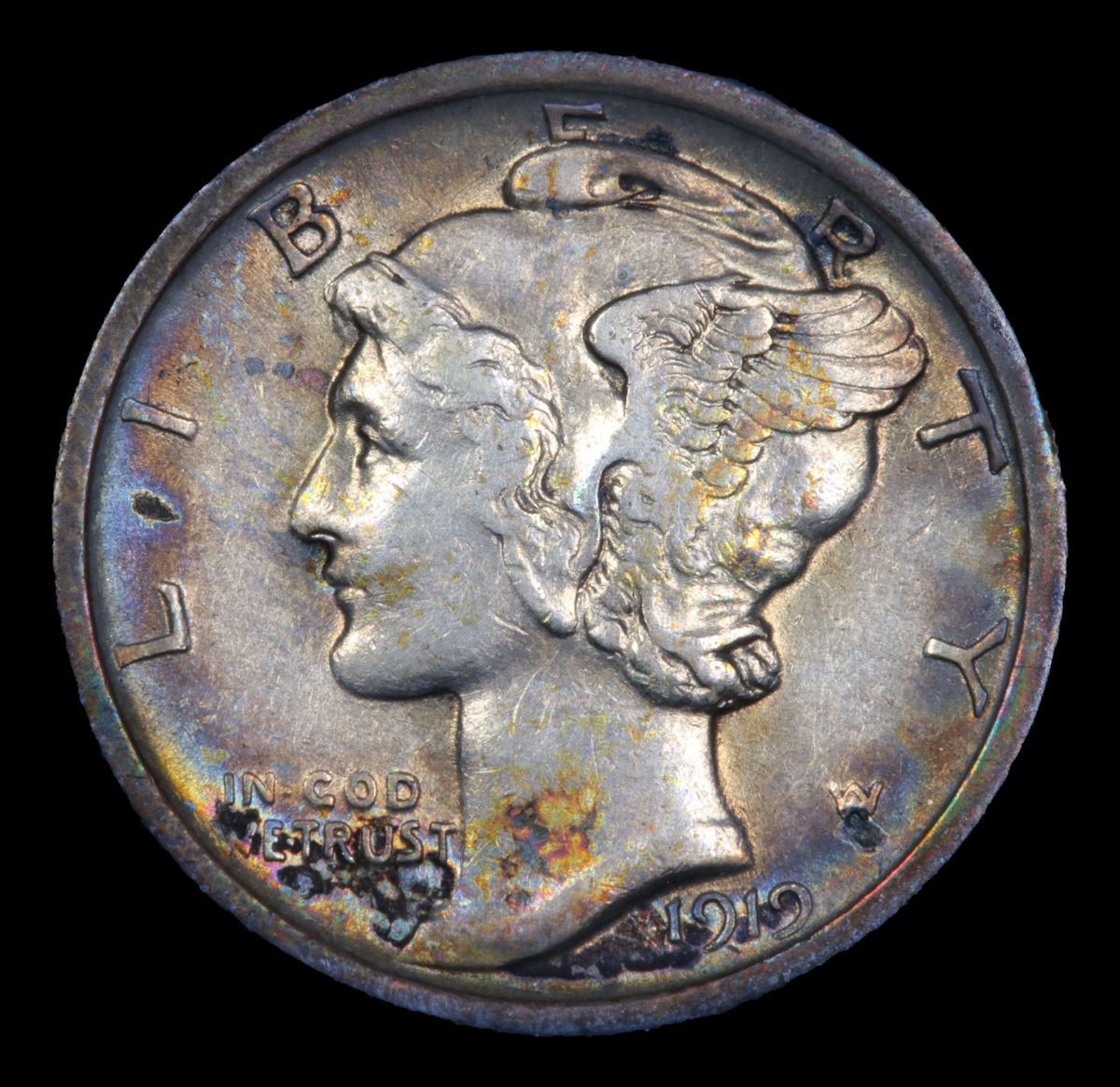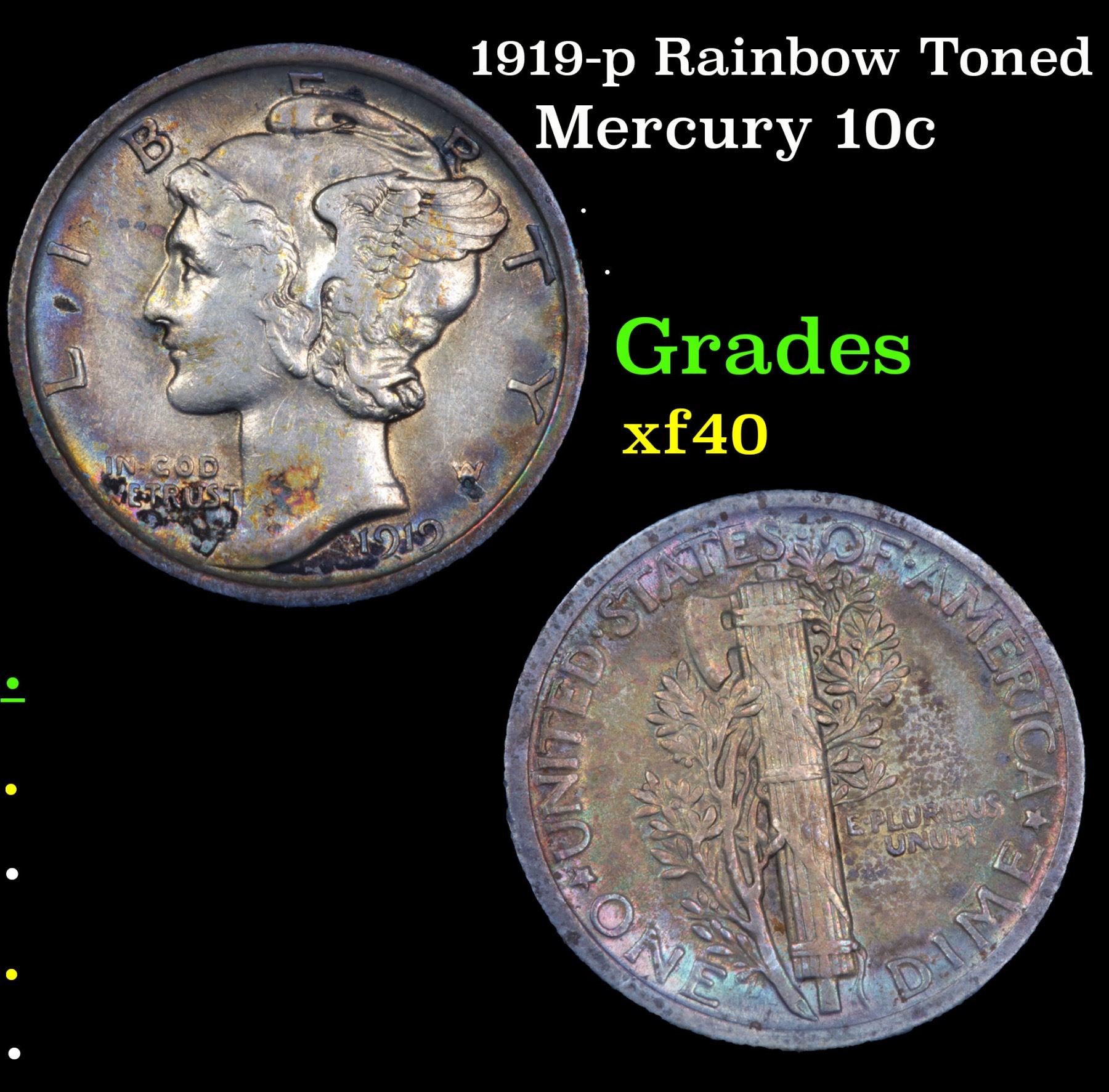 1919-p Rainbow Toned Mercury Dime 10c Grades xf.