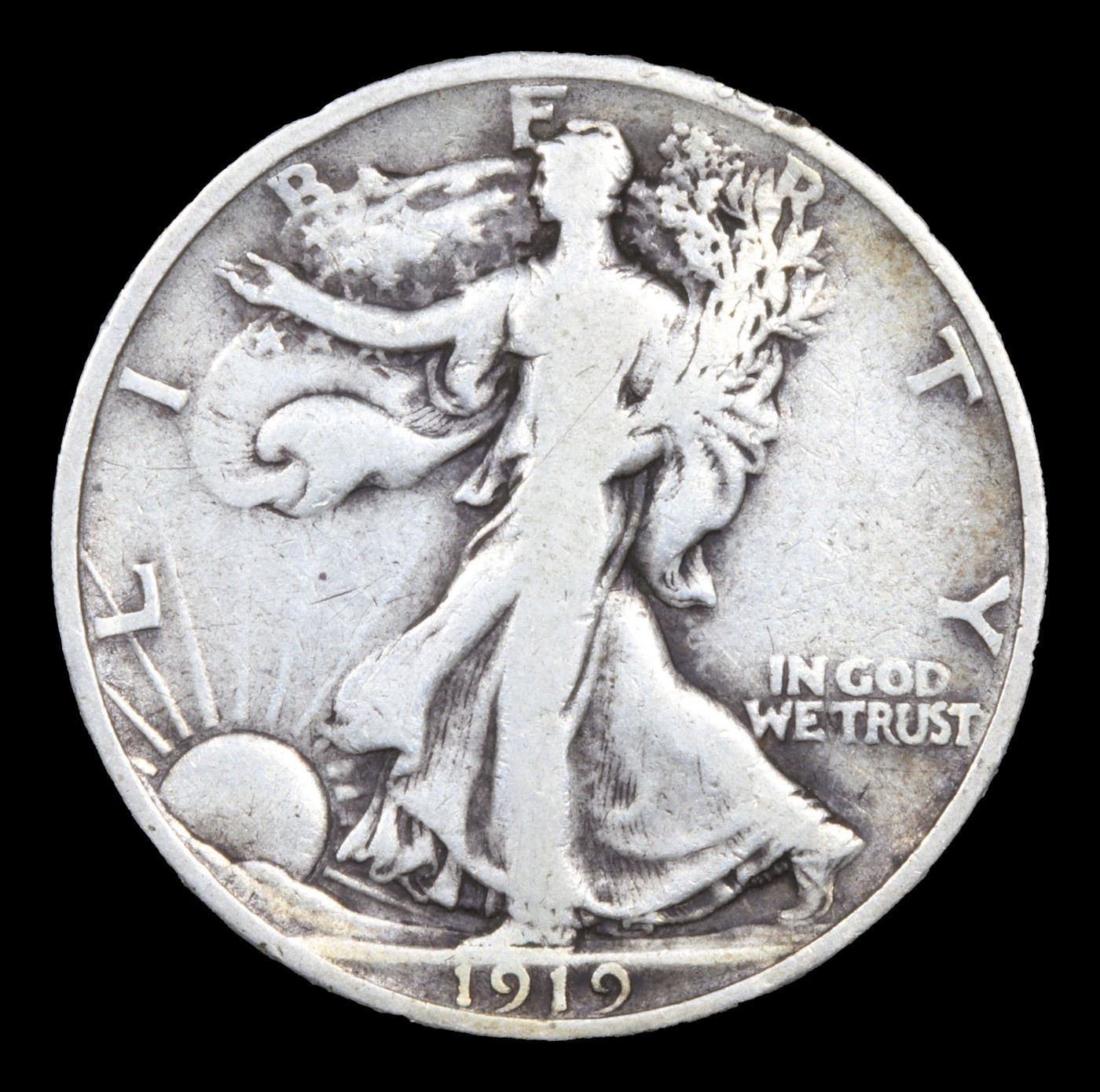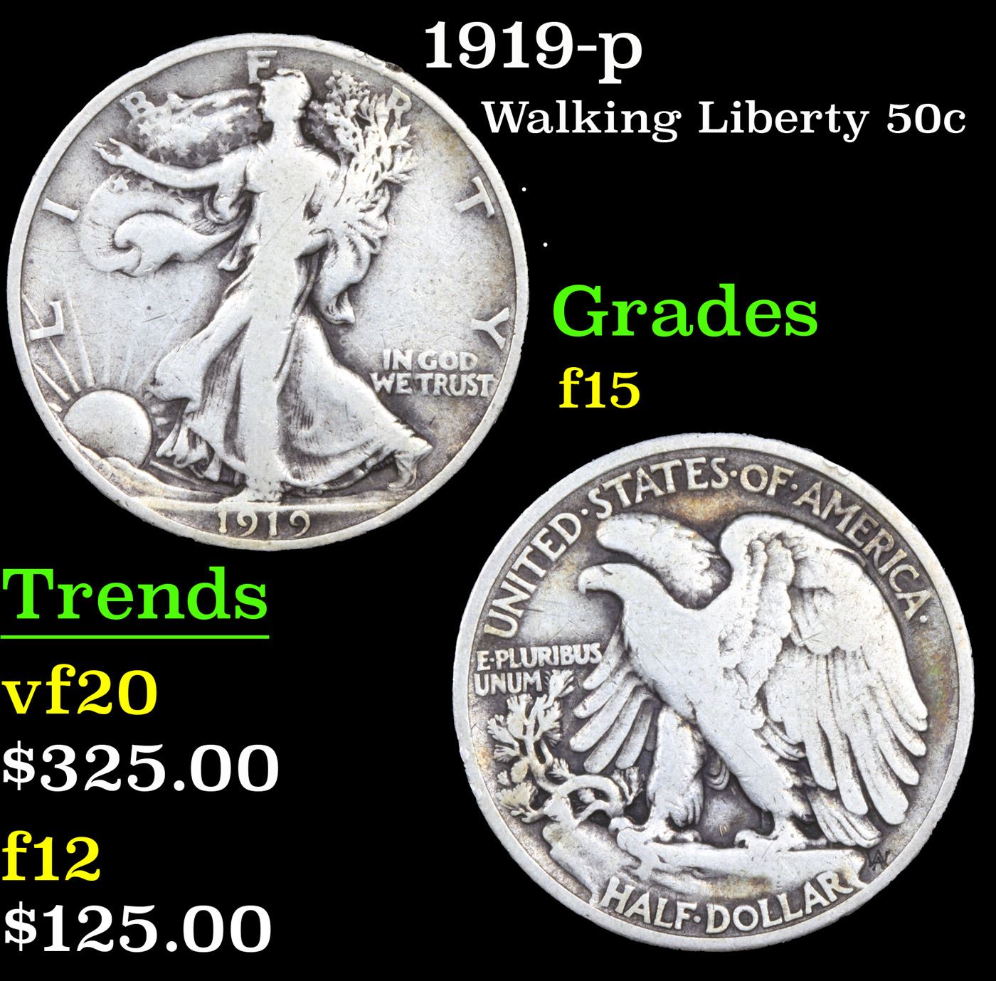 1919-p Walking Liberty Half Dollar 50c Grades f+.