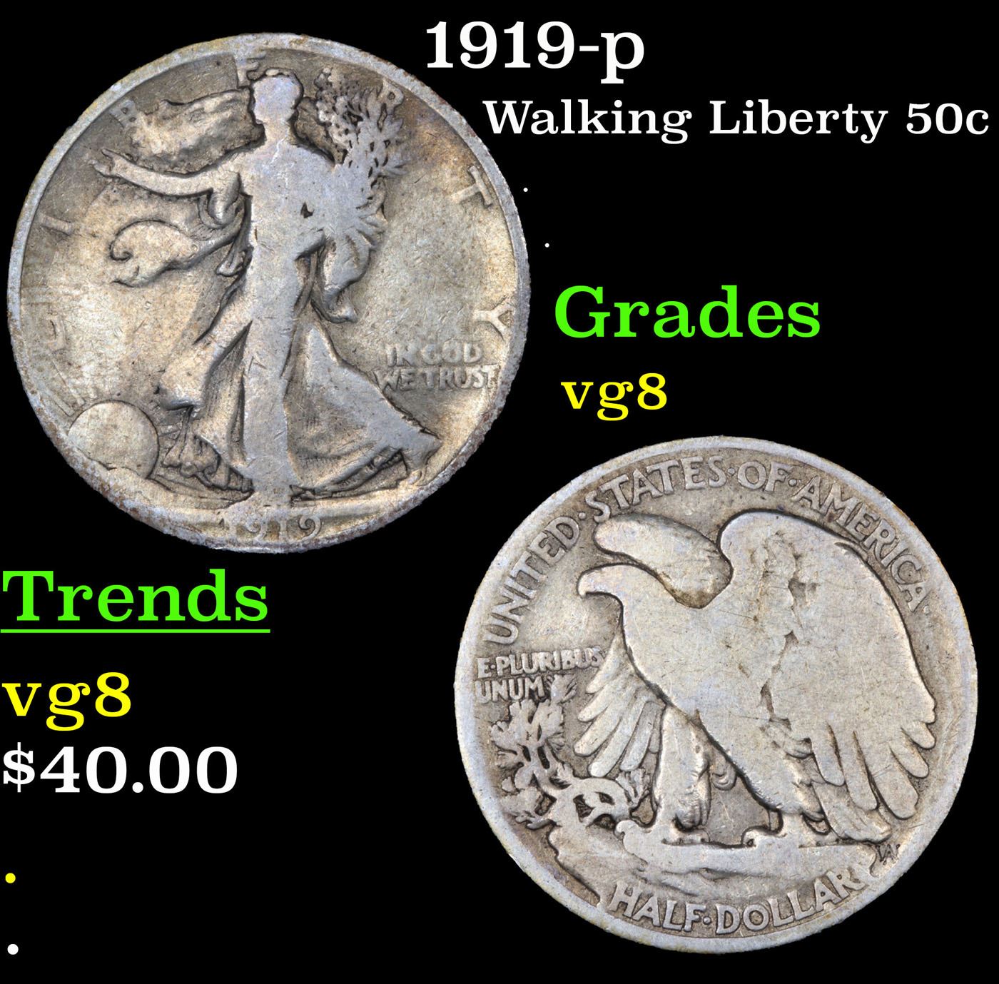 1919-p Walking Liberty Half Dollar 50c Grades vg, very good.