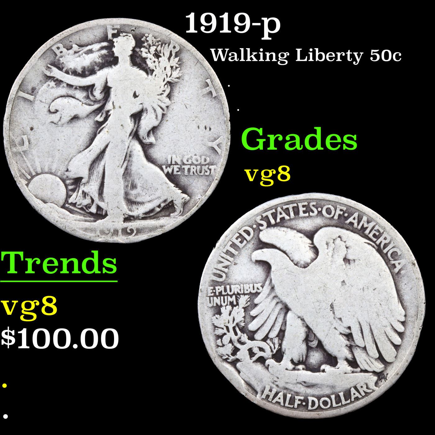 1919-p Walking Liberty Half Dollar 50c Grades vg, very good.