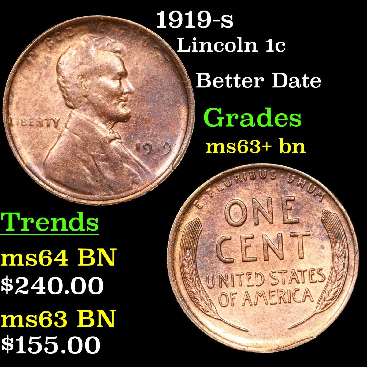 1919-s Better Date . Lincoln Cent 1c Grades Select+ Unc BN.