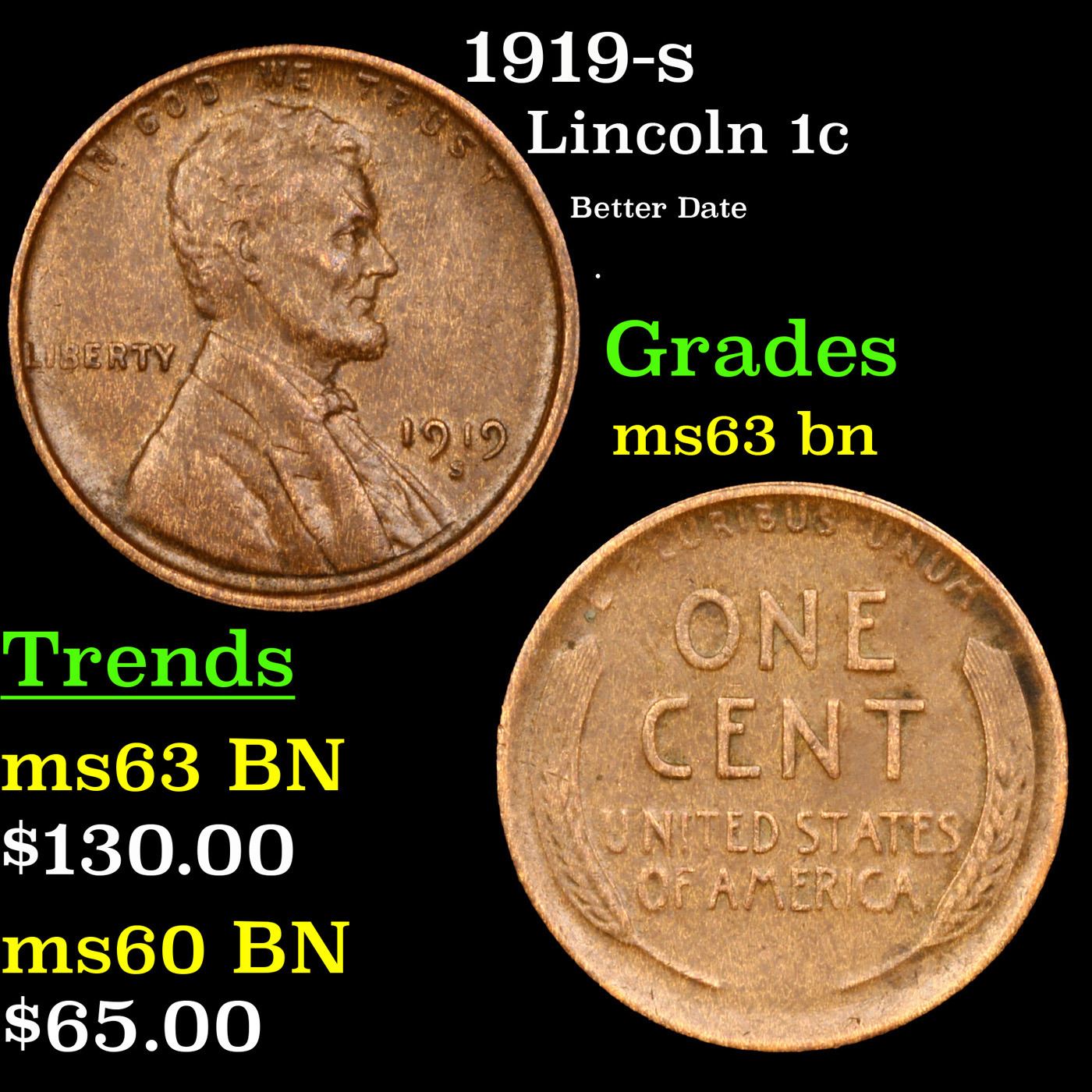 1919-s Lincoln Cent 1c Grades Select Unc BN.