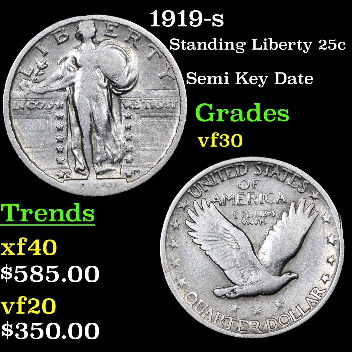 1919-s Semi Key Date . Standing Liberty Quarter 25c Grades vf++.