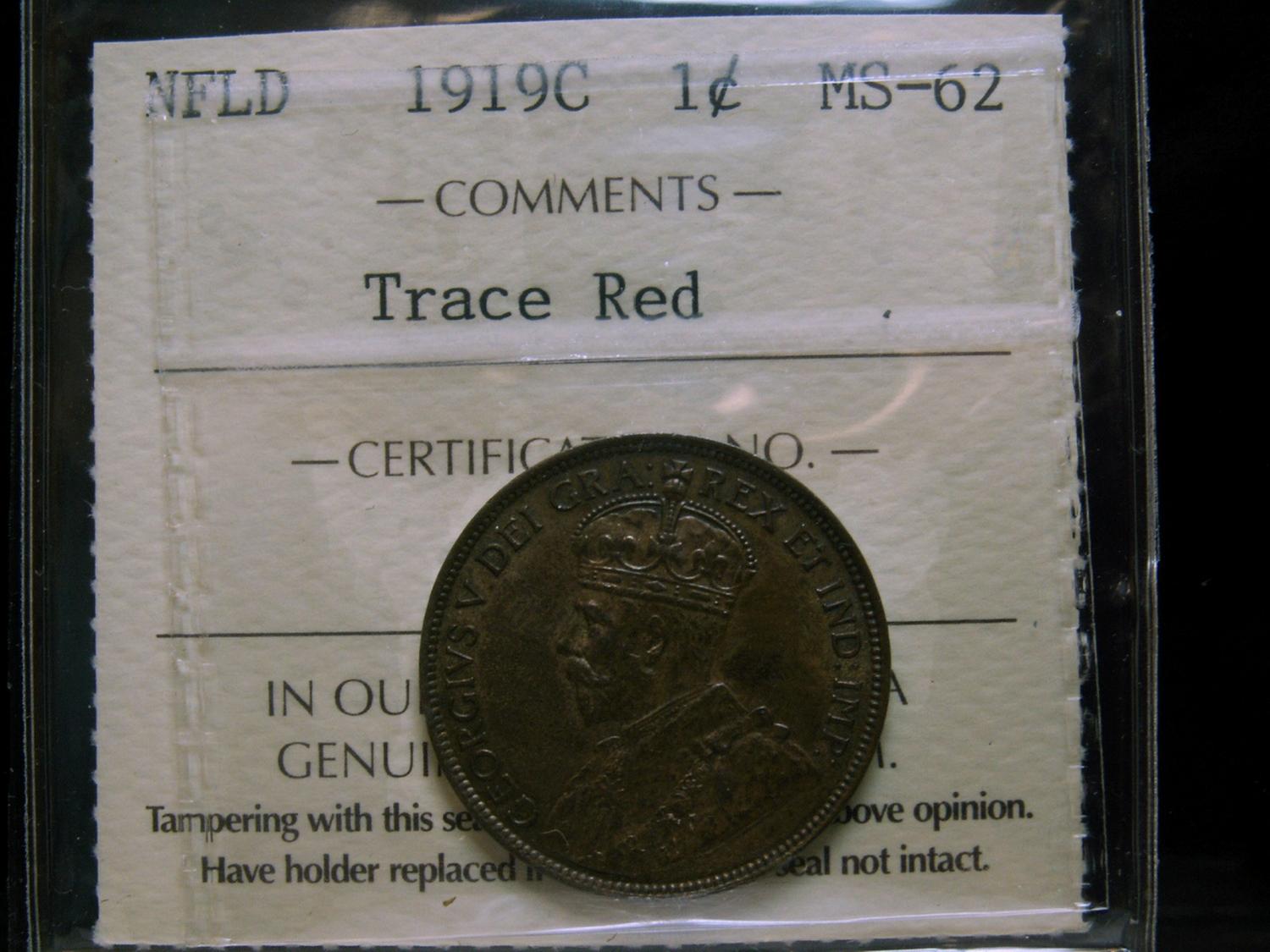 1919C NFLD 1¢ ICCS MS62 Trace Red
