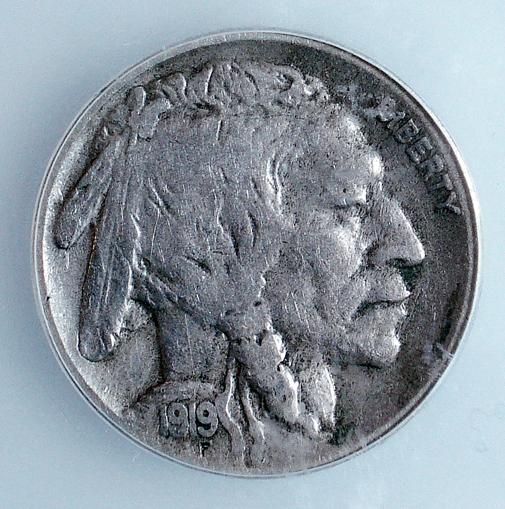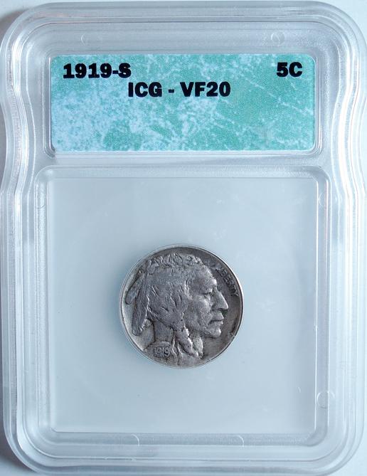 1919S Buffalo nickel ICG20. Horn very weak but all there
