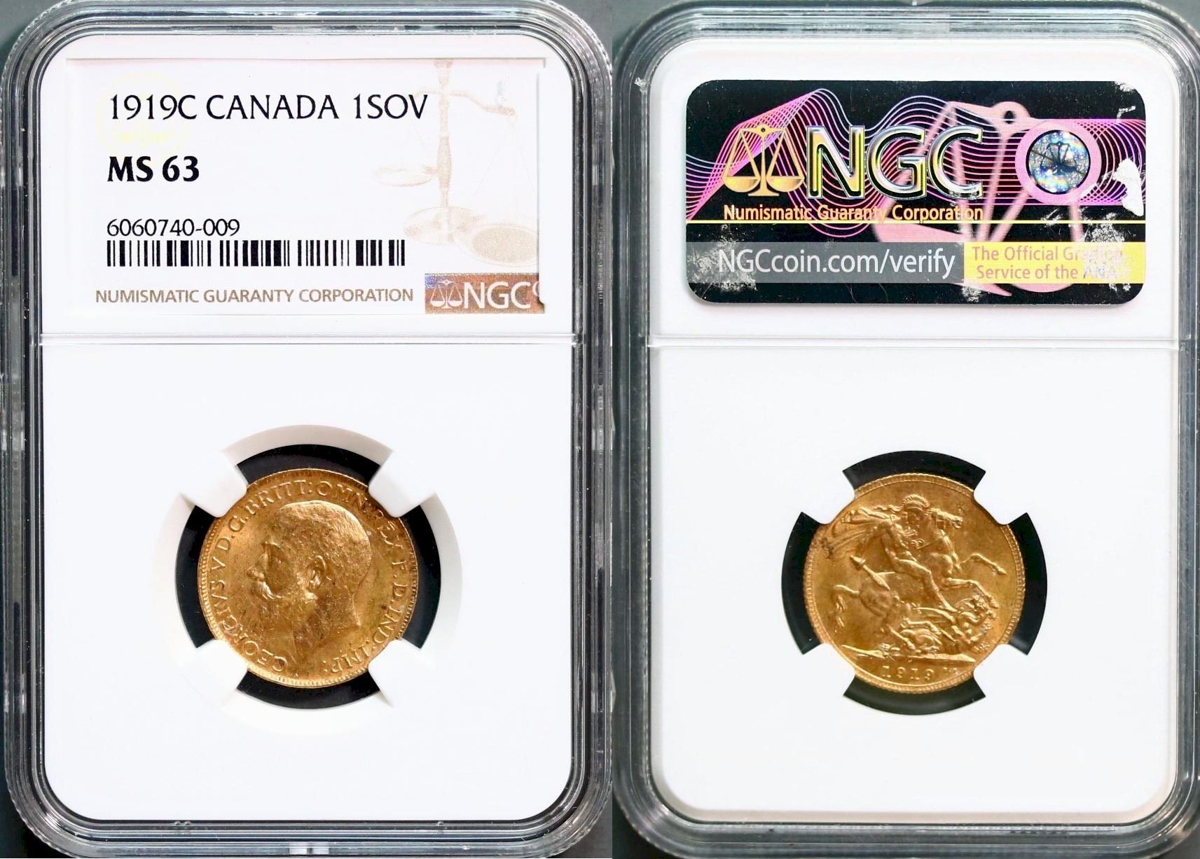 1919c Gold Sovereign, NGC Choice Mint State-62. Appealing well struck example.