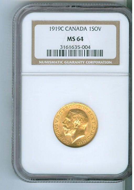 1919c Gold Sovereign NGC MS64. Superb lustre with nice clean fields.