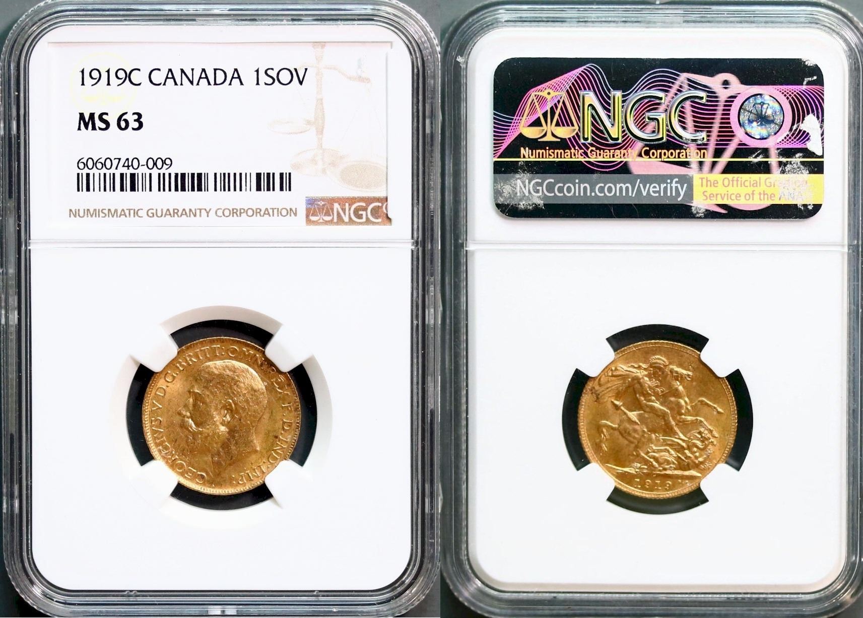 1919c Gold overeign, NGC Choice Mint State-62. Appealing well struck example.