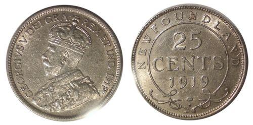 0552 - 1919c Newfoundland Twenty-Five Cents-EF45