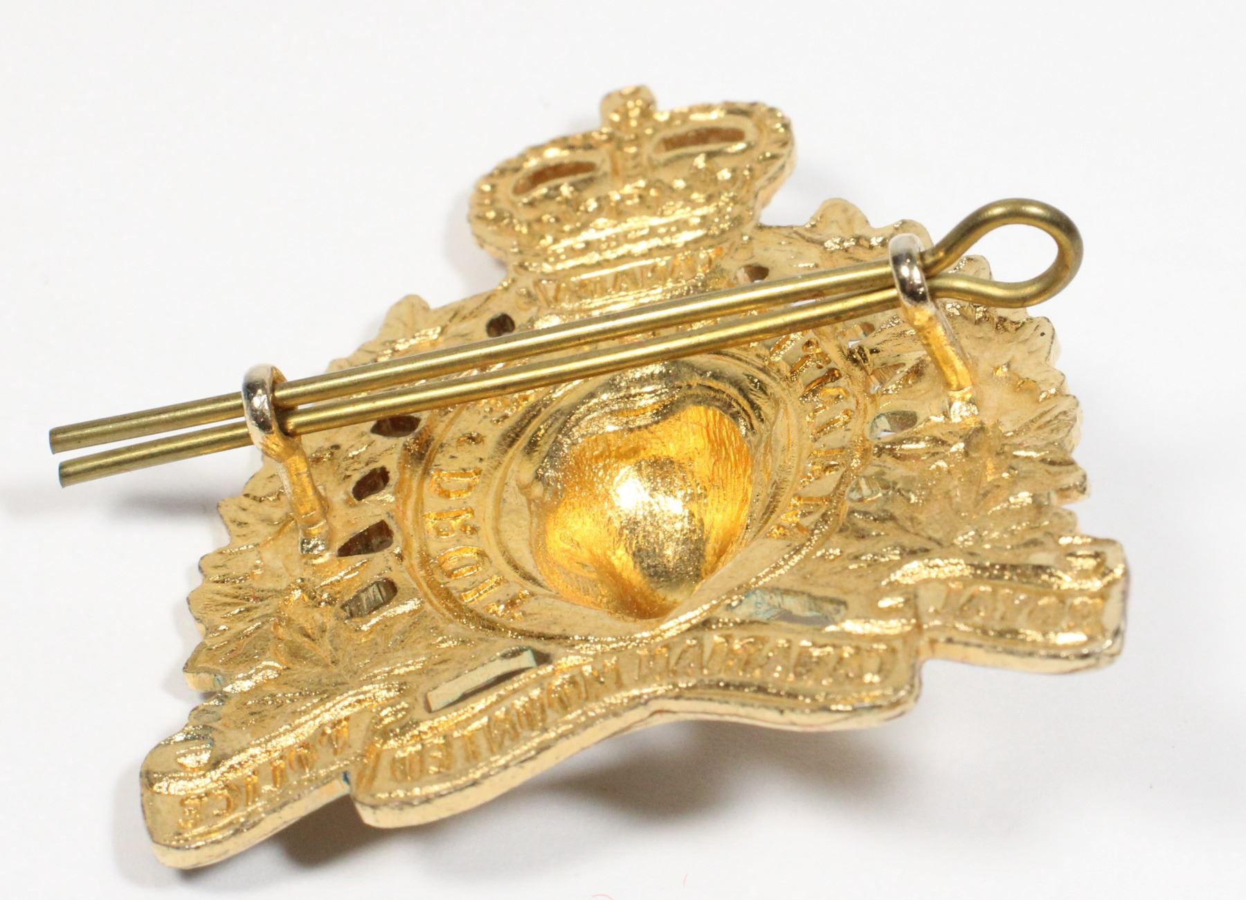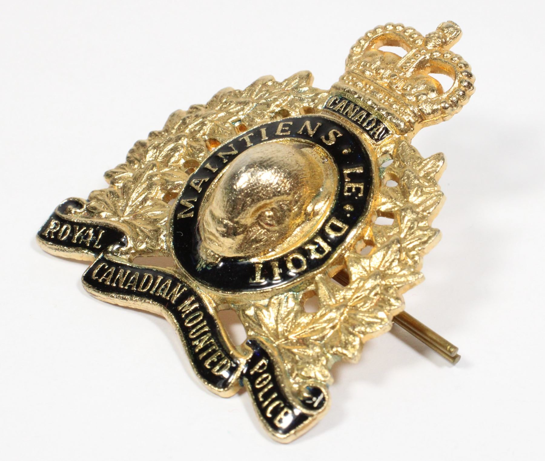VARIATION QUEEN ELIZABETH II RCMP ROYAL CANADIAN MOUNTED POLICE CAP BADGE, PRESSED BACK WITH LUGS - CANADIAN LAW ENFORCEMENT INSIGNIA