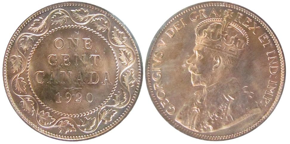 1920 1¢ ICCS MS65RD. 97% red and lustrous.