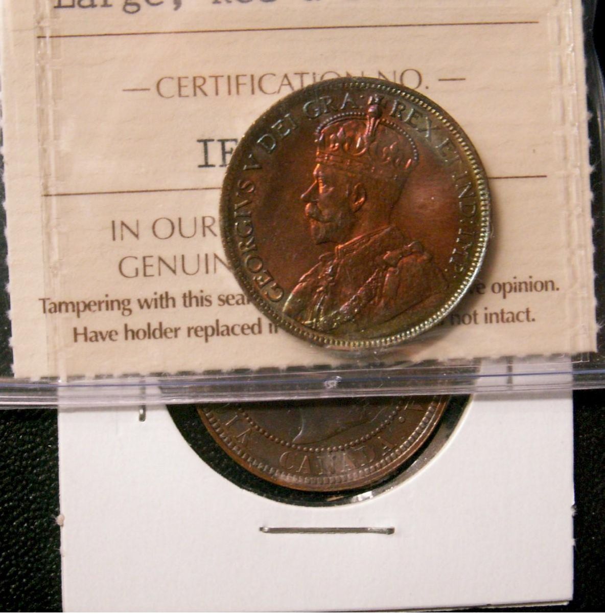 1920 1¢ Large ICCS MS63RB & 1888 1¢ UNC. Lustrous and heavily toned example.