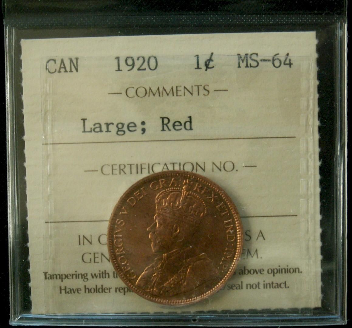1920 1¢ Large ICCS MS64RD. Sharp and lustrous.