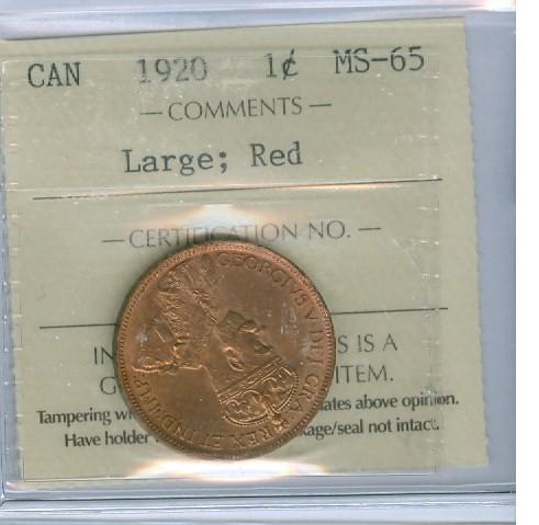 1920 1¢ Large ICCS MS65RD. Gem example.