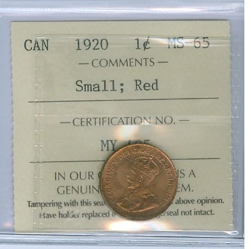 1920 1¢ Sml ICCS MS65RD. 95% red with lustre.