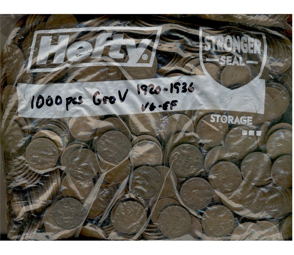1920 1¢ to 1936. A nice accumulation of 1000 pcs VG to VF. No key issues included.