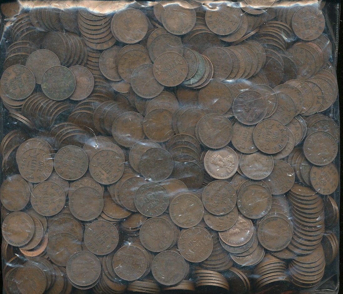 1920 1¢ to 1936 Small Lot; includes 1000 pcs George V. VG to VF, with no key issues.
