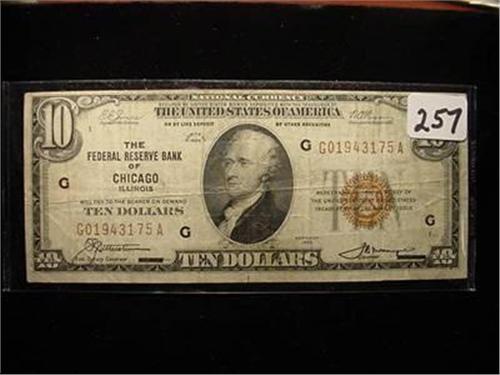 1920 $10.00 National Currency "Federal Reserve Bank of Chicago, Il" VF