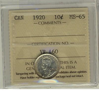 1920 10¢ ICCS MS65. Lustrous white.