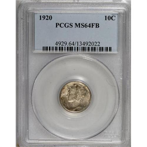 <B>1920 10C MS64 Full Bands PCGS.</B></I> PCGS Population (274/250). NGC Census: (187/142). Mintage: 59,030,000. Numismedia Wsl. Price for NGC/PCGS coin in MS64: $120. (#4929)<BR><BR><B>Coin Engraver:</B> Adolph A. Weinman<BR><BR><b>Shipping:</b> Coins & Currency (<a target="_blank" href="http://www.heritageauctions.com/common/shipping.php">view shipping information</a>)