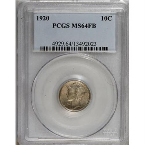 <B>1920 10C MS64 Full Bands PCGS.</B></I> PCGS Population (274/250). NGC Census: (187/142). Mintage: 59,030,000. Numismedia Wsl. Price for NGC/PCGS coin in MS64: $120. (#4929)<BR><BR><B>Coin Engraver:</B> Adolph A. Weinman<BR><BR><b>Shipping:</b> Coins & Currency (<a target="_blank" href="http://www.heritageauctions.com/common/shipping.php">view shipping information</a>)