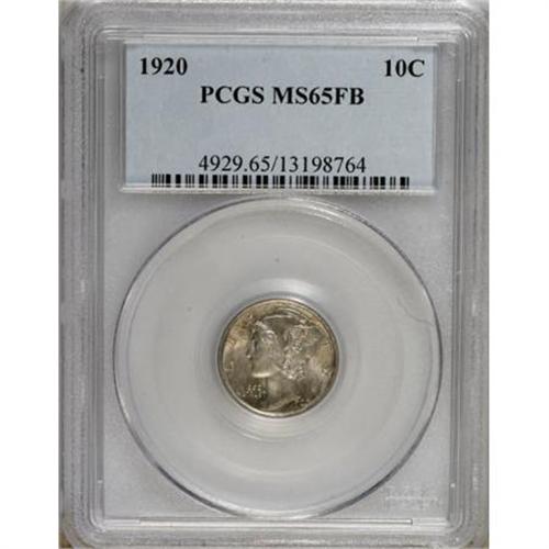 <B>1920 10C MS65 Full Bands PCGS.</B></I> PCGS Population (169/81). NGC Census: (99/43). Mintage: 59,030,000. Numismedia Wsl. Price for NGC/PCGS coin in MS65: $440. (#4929)<BR><BR><B>Coin Engraver:</B> Adolph A. Weinman<BR><BR><b>Shipping:</b> Coins & Currency (<a target="_blank" href="http://www.heritageauctions.com/common/shipping.php">view shipping information</a>)